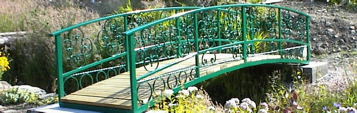 I build galvanized and powder coated metal garden bridges. I  offer designs from minimalist to ornate including Monet and Japanese designs.
